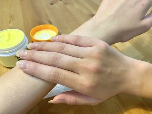 クリームの匂いは1分間塗り込んでも消えず、肌に香りが残ります。