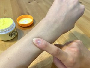 固く伸びづらいので、少し力を入れて擦り込むように塗る必要がありそう。
